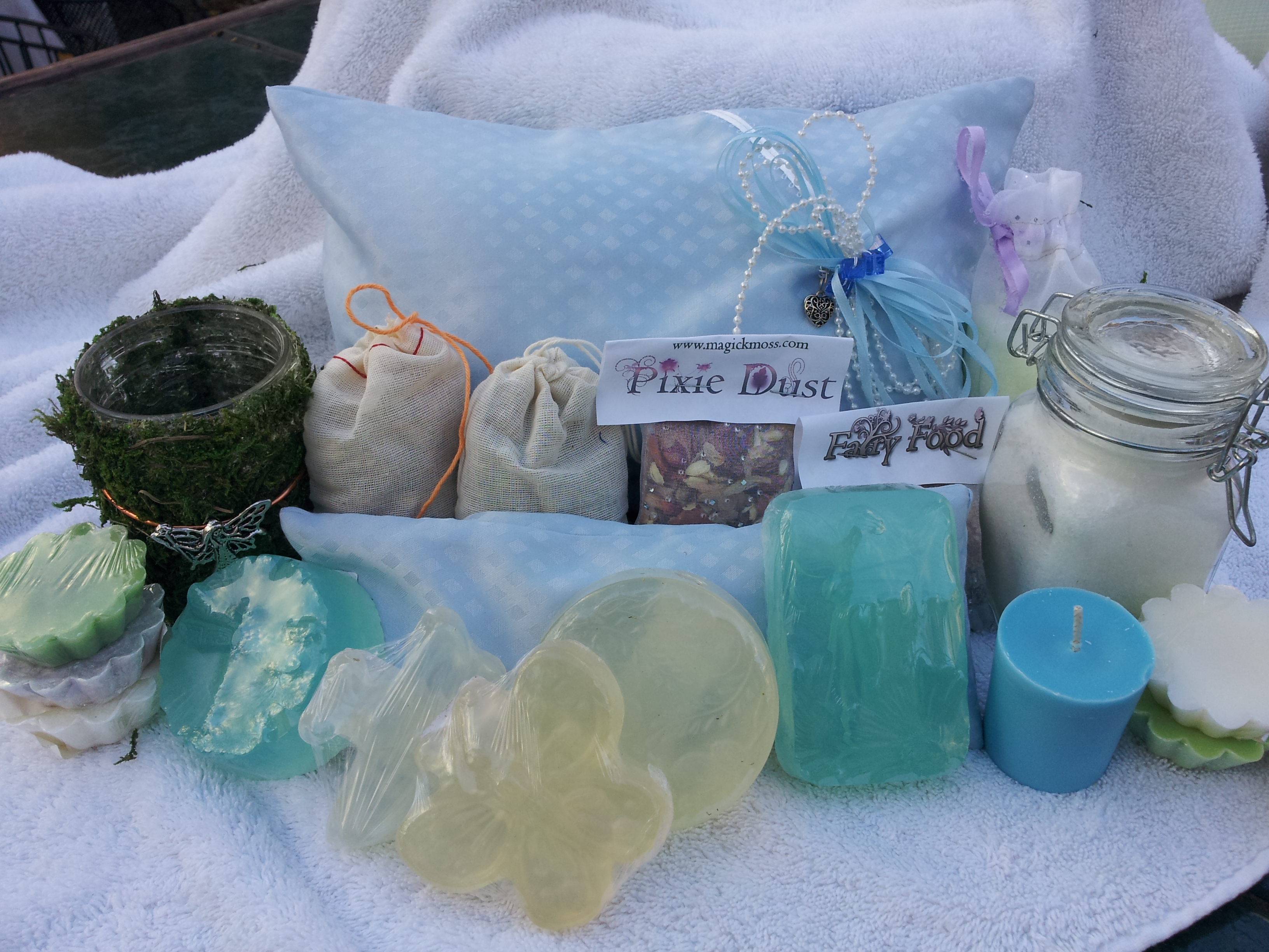 Your Personal Home Spa Kit will contain; 1 dream sleep pillow that measures 8" x 11" and has a removable cover for easy cleaning(Dryel recommended) and has to sleep herbal formulas, the first is lavender/chamomile, the 2nd is jasmine/hops/rose both are known to to induce deep sleep patterns. Also a lavender flax seed eye pillow that is known to sooth headaches and relax the stress of the day. 3 Glycerin beauty bars, 2 English gardens, 1 fresh cut rose, 2 guest soaps, 4 wax melts or tarts in fresh cut rose, peppermint bark, lavender, 1 vanilla bean, 1 English gardens soy wax large votive candles, 1 fairy food and 1 pixies dust herbal sachet, 1 moss covered fairy charmed candle holder, and last but not least 1 10 oz apothecary jar, 1 7 oz of premium lavender and fresh cut rose bath salts. This great set of aromatherapy products is sure to give a scene of well being. An 96.00 value now available for 59.00. Great savings.