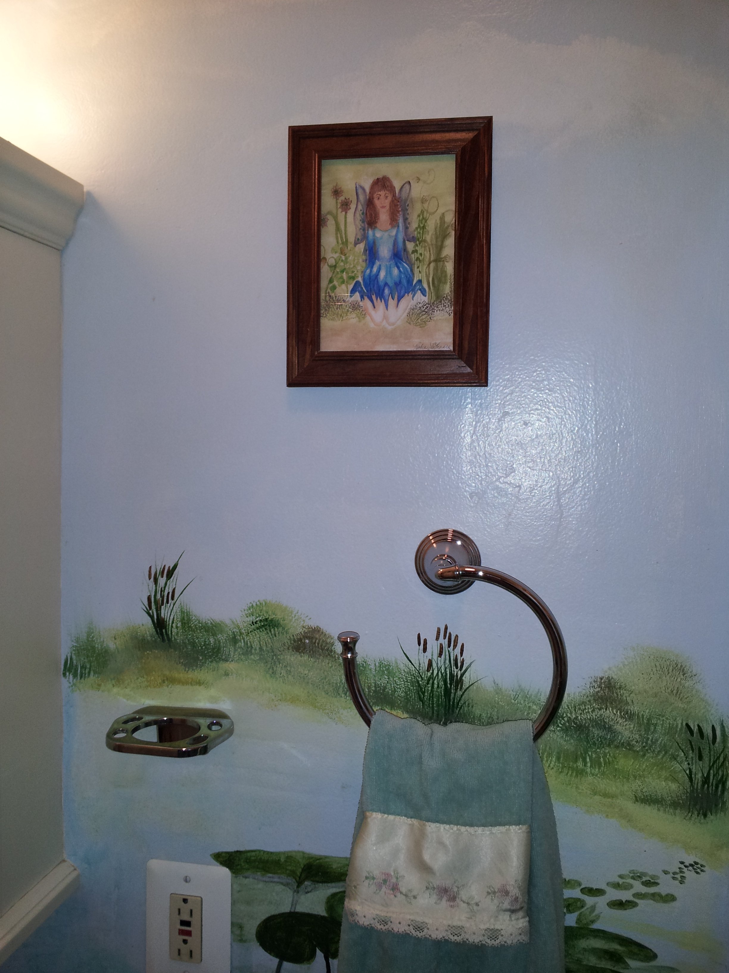 This original water color print called the "Garden Fairy" will add a touch of whimsy to your home spa bath, or any room, as well as the perfect addition to your favorite fairy collection. 5"x7" framed in pine.