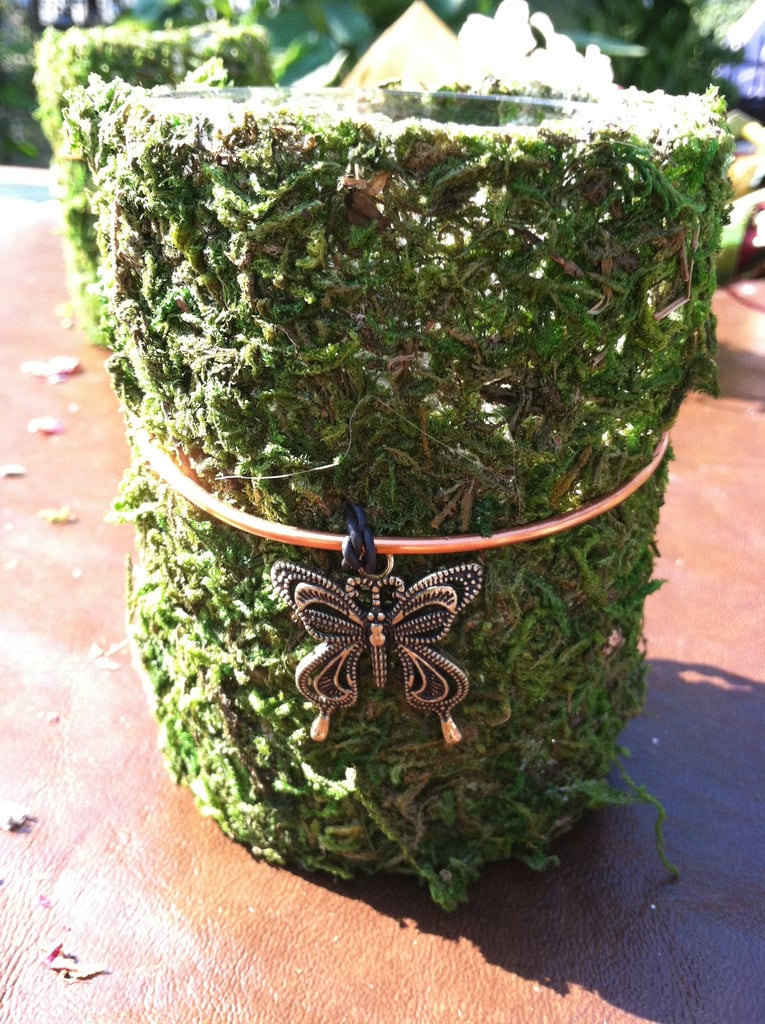 Add a little whimsy to your fireplace mantle or outdoor garden-patio shelter with our Magick Moss Large Votive Holder-perfect for votives and medium sized candles. These are 12 oz jars measuring approximately 4in tall. Covered in preserved moss and adorned with a sparkling charm.