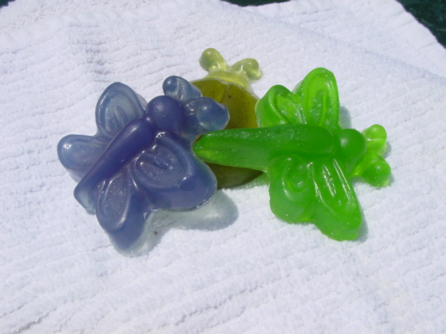 Our very popular summer bug guest soap collection. All bugs are available in all Magick Moss spring and summer fragrances including Kelley's Greenhouse, Rose of Sharon,Fields of Lavender, Lavender Lilac, Coconut cabana,Lily of the valley,and secluded beach.If you prefer a certain scent/bug/color combination, please send a note with your purchase and we'll be happy to oblige! Undecided? Send no instructions and let us suprise you! Set of 3